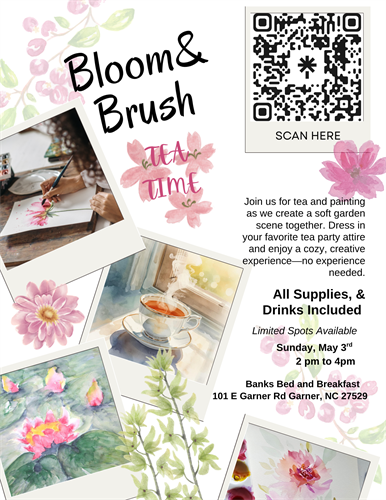 Registration and tickets required. Available on Eventbrite under Bloom & Brush