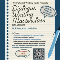 Come learn practical techniques to improve the quality of your dialogue at the Dialogue Master Class with Amy Davis on May 14th. ... read more